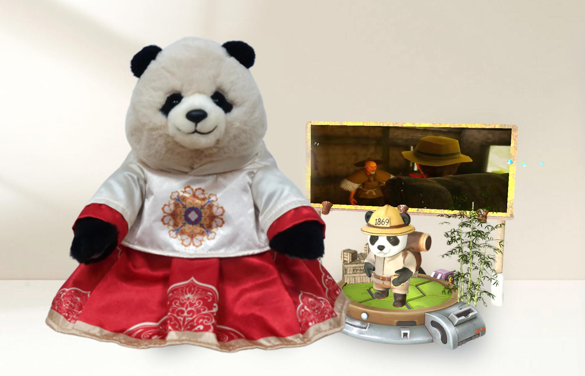 依托移動終端識別“福寶”“香香”官方IP授權(quán)的AR文創(chuàng)產(chǎn)品,實現(xiàn)增強現(xiàn)實互動體驗,適用于線下打卡、文創(chuàng)衍生等輕量化場景。